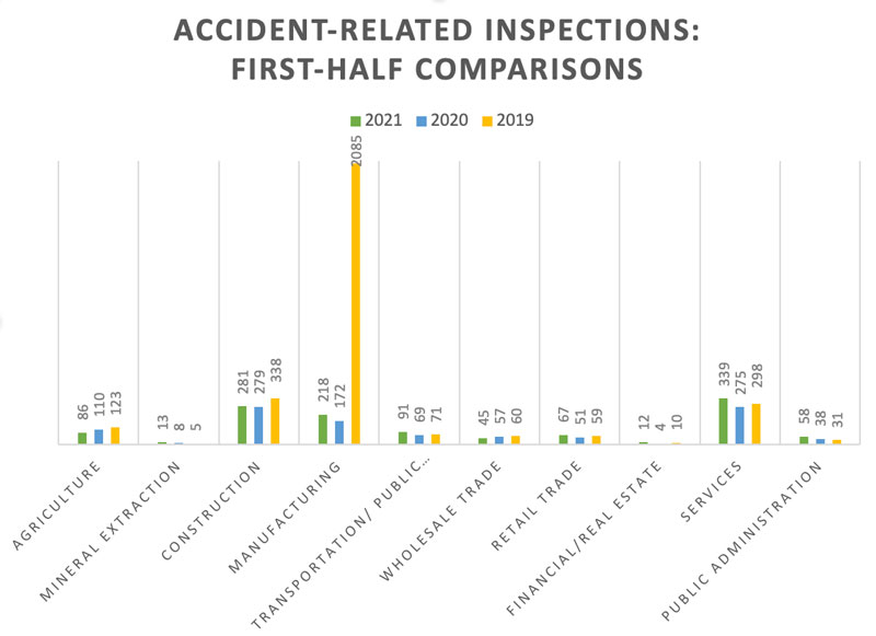 Published April 7, 2022 at 800 × 581 in Cal/OSHA Inspection Stats Accident-Related Inspections: First-Half Comparisons