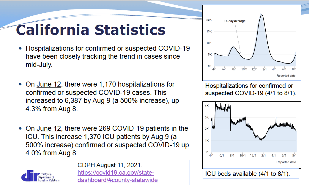 Published August 19, 2021 at 1040 × 624 in More Coming on COVID ETS COVID outbreak data for California workplaces. CDPH admits the data have “limitations.” COVID outbreak data for California workplaces. CDPH admits the data have “limitations.”
